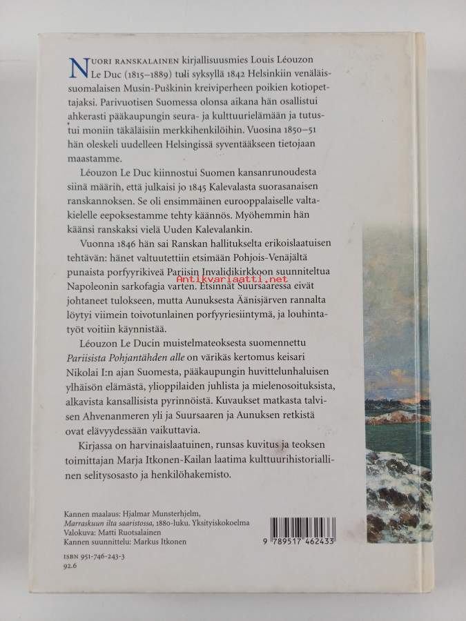 Muu(t) tekijä(t): Marja Itkonen-Kaila, Louis Léouzon Le DucMerkinnät: omistajamerkintäSarja: Suomalaisen Kirjallisuuden Seuran toimituksia 827Asiasanat: muistelmat, matkakertomukset, historia, henkilöhistoria, yhteiskuntakuvaus, kulttuurihistoria, suomalaiset, autonomian aika