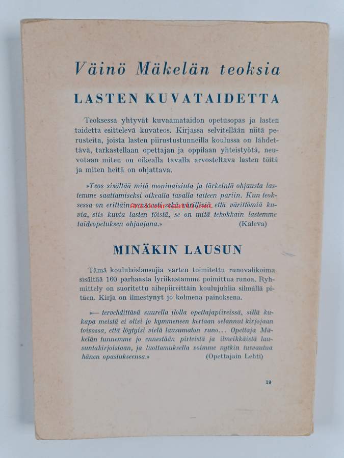 Viiva, muoto ja väri -piirustuksen ja kuvaamataidon opettamisen oppikirja havainnollisine kuvineen ja tuntisuunnitelmineen, aineistossa myös huomattavissa