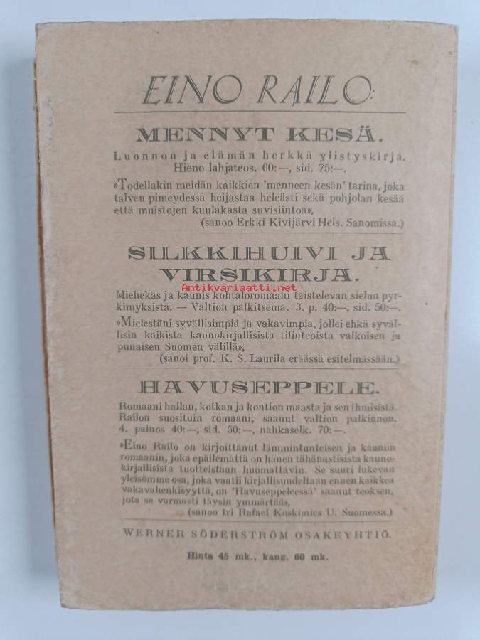 Hyvä. Tarkempi kuntoluokka: K3- ; Hieman kulumaa kansissa, pienoista repeämää selkämyksen kulmissa, selkämyksessä vinoutta, selkämyksessä lukutaittumaa