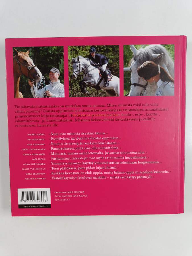 Muu(t) tekijä(t): Katri SyvärinenAsiasanat: kokemukset, ratsastus, ammattiurheilu, ratsastajat, kouluratsastus, esteratsastus, kenttäratsastus, lännenratsastus, islanninhevonen