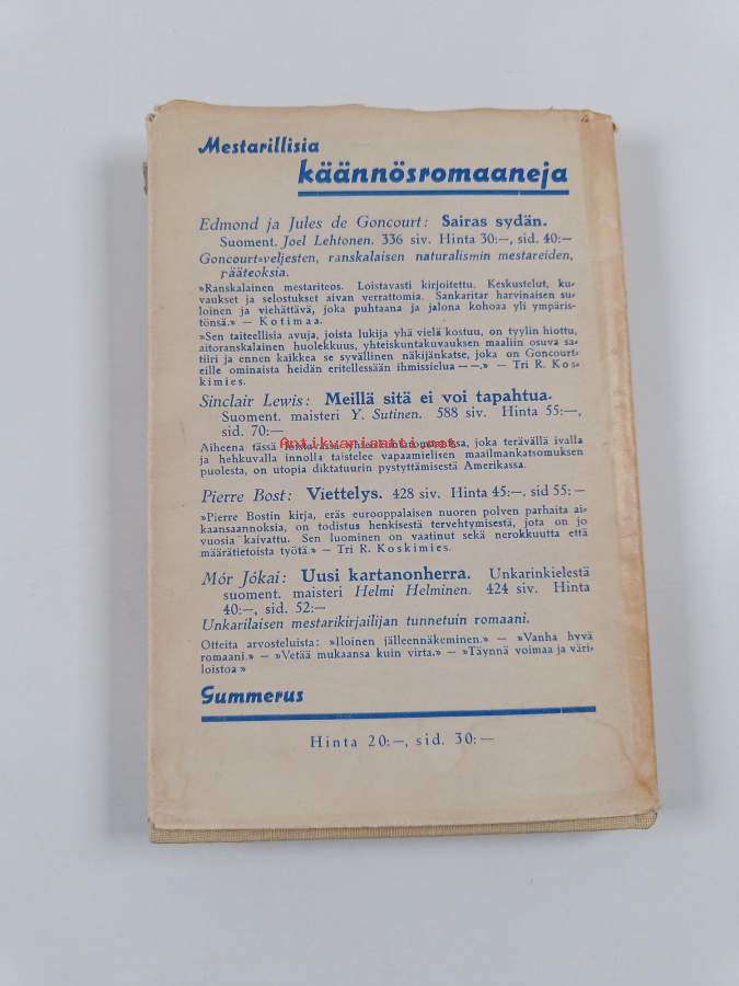 Hyvä. Tarkempi kuntoluokka: K3- ; Pientä kulumaa, hieman tahraisuutta. Kansipaperin kunto: joitain repeämiä/kulumaa & tahraisuutta