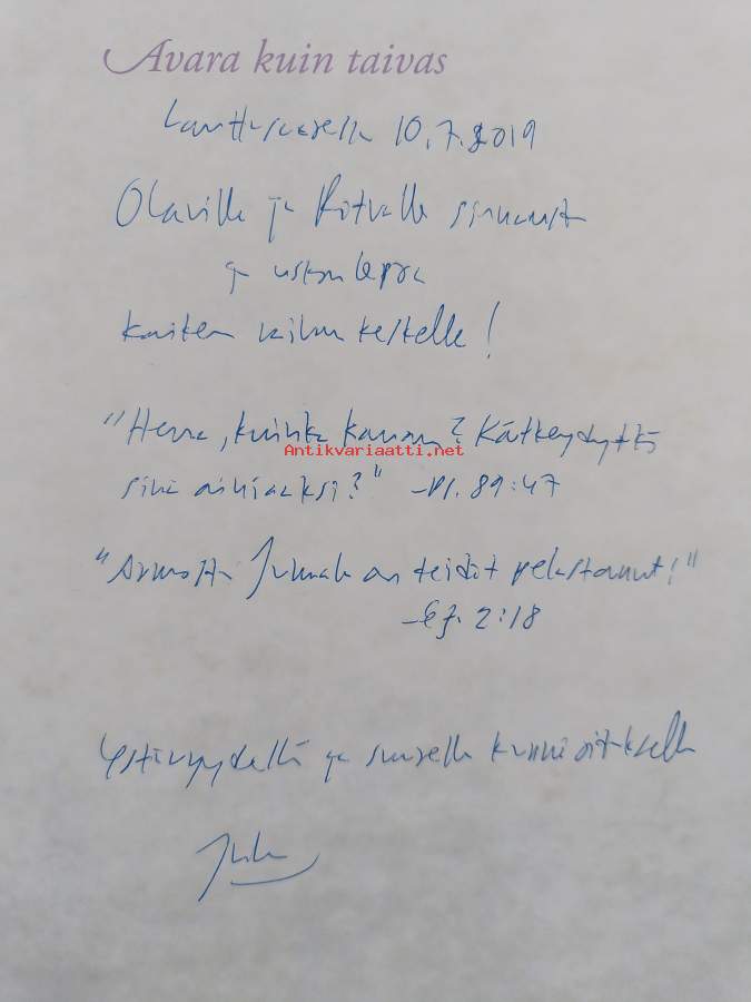 Avara kuin taivas (signeerattu, tekijän omiste)