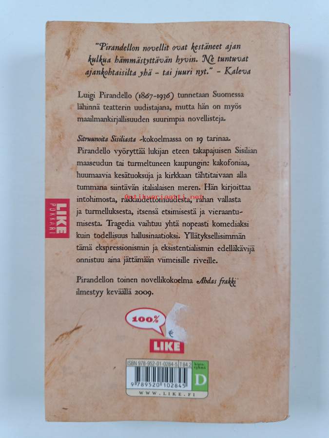 Hyvä. Hieman kulumaa, pienoista tahraisuutta, selkämyksessä hieman vinoutta