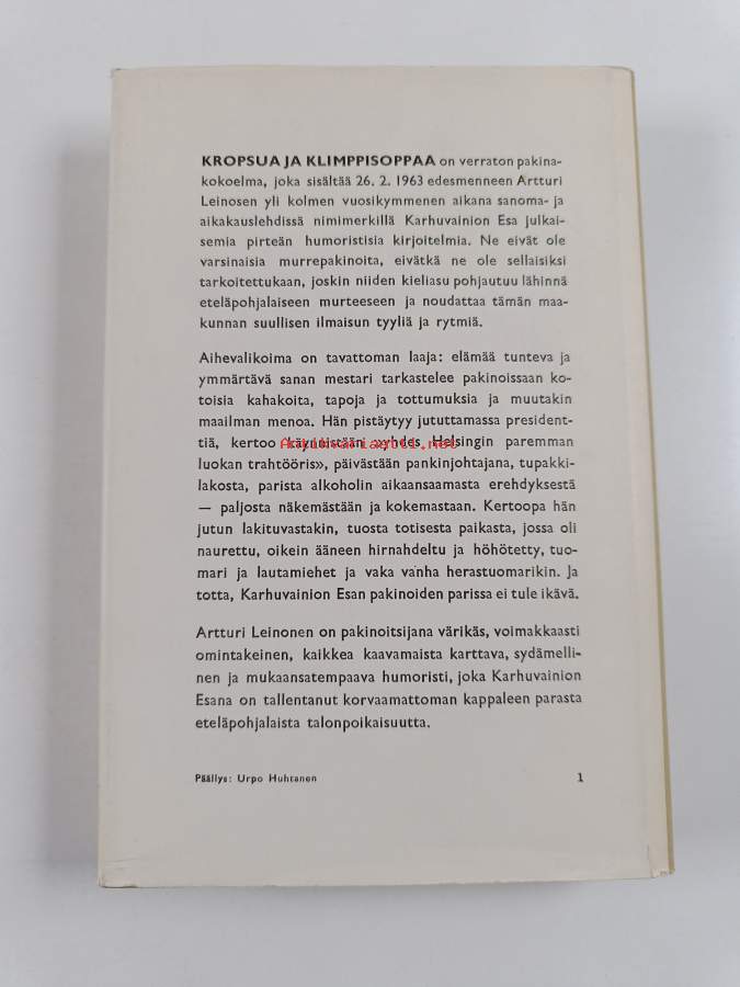 Kropsua ja klimppisoppaa : pakinoitaKirjaLeinonen, Artturi, 1888-1963.WSOY 1963.