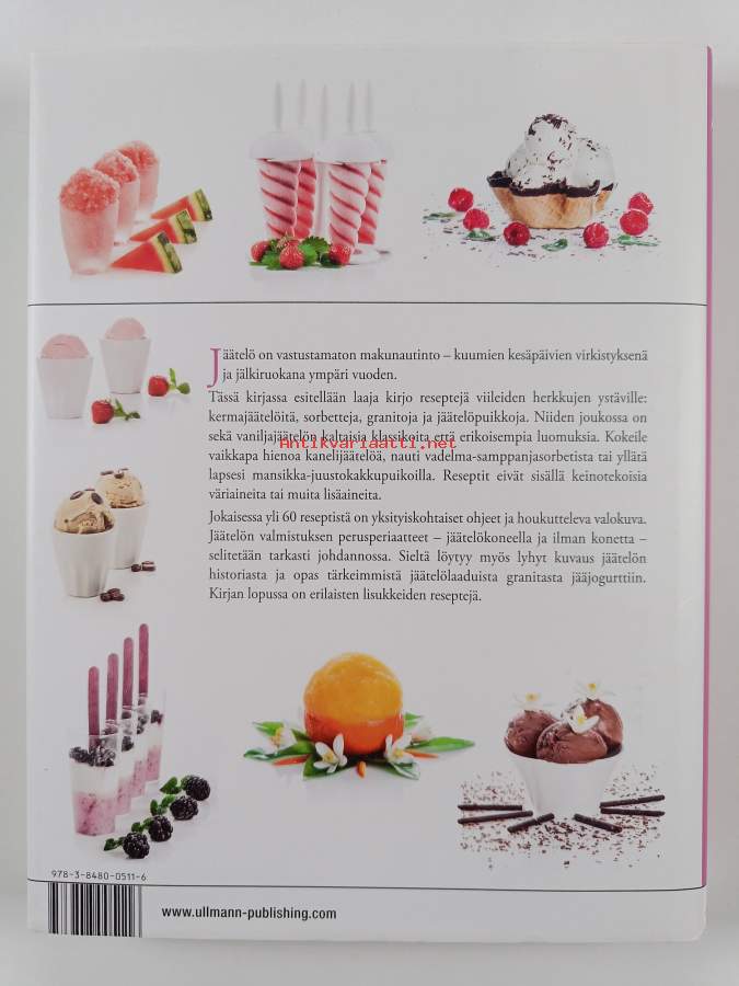 Jäätelö, 2013. Kirjassa on yli 60 herkullista jäätelöreseptiä: kermajäätelöitä, sorbetteja, granitoja ja jäätelöpuikkoja.