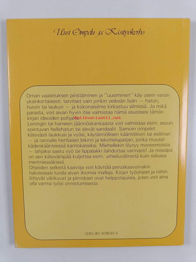 Muu(t) tekijä(t): Ritva Salmi, Pertti Hiltunen ym.Sarja: Uusi ompelu- ja käsityökerho 17Alkuteos: Fashion accessoriesAsiasanat: muotiasuste, bikini, vyö, laukku