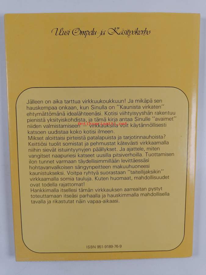 Muu(t) tekijä(t): Pertti Hiltunen, Marja-Leena Hiltunen ym.Sarja: Uusi ompelu- ja käsityökerho 2Alkuteos: Vackert virkatAsiasanat: virkkaus, neulominen, virkkaustyö