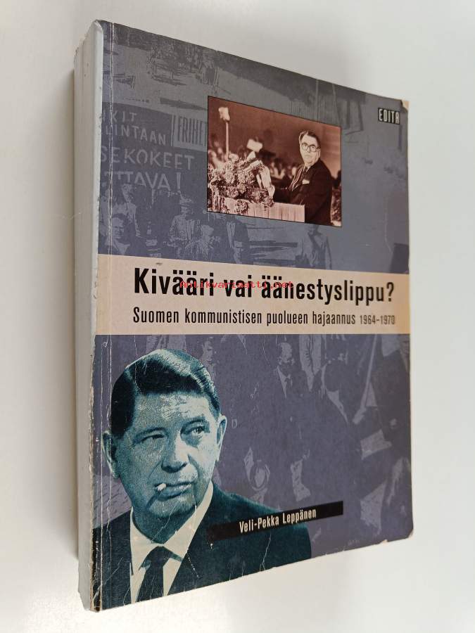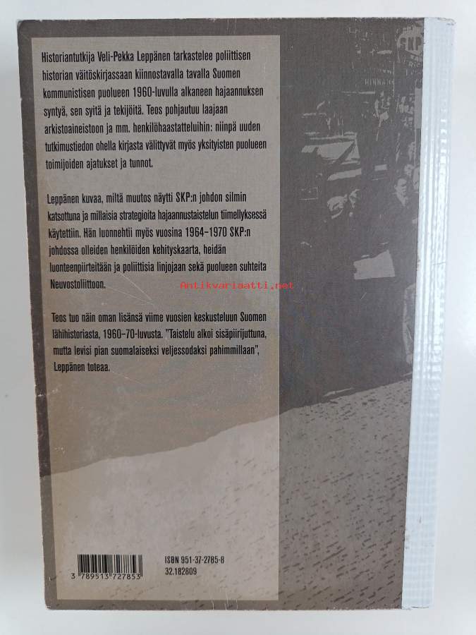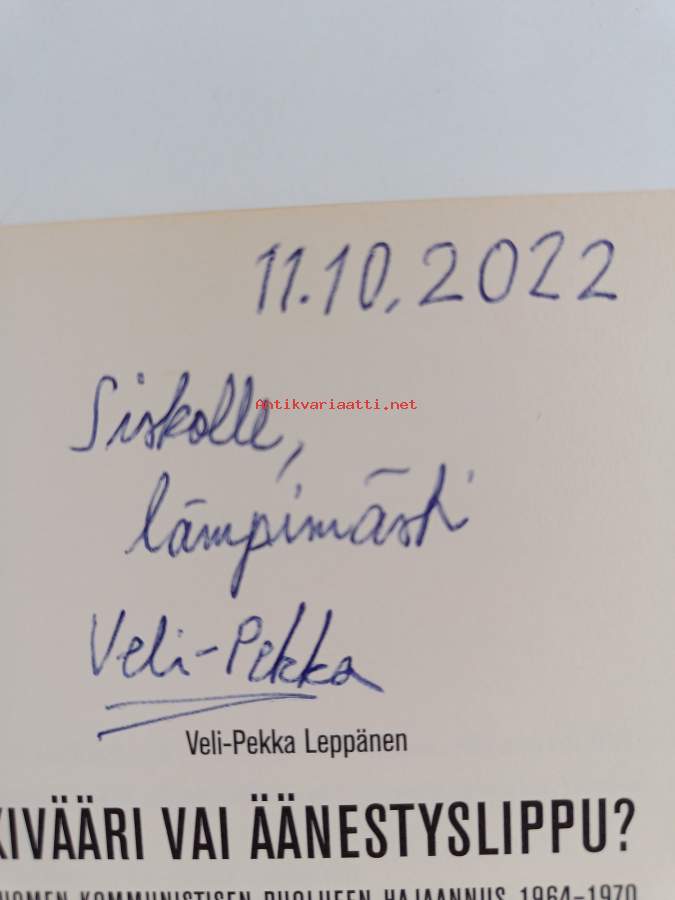 suojanimiösivulla pienoinen kuulakärkikynällä tehty merkintä, selkämys korjattu teipillä
