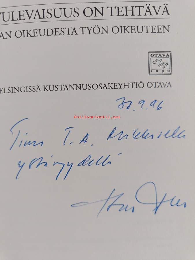 Tulevaisuus on tehtävä : maan oikeudesta työn oikeuteen (signeerattu, tekijän omiste)