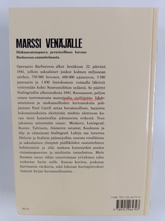 Merkinnät: omistajamerkintä (tarra)Alkuteos: Unternehmen Barbarossa : der Marsch nach RusslandAsiasanat: sotahistoria, toinen maailmansota, taistelut, operaatio Barbarossa