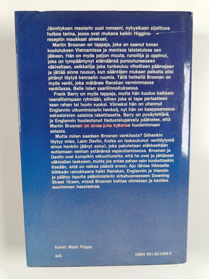 Hyvä. Tarkempi kuntoluokka: K3- ; Hieman kulumaa, pienoista kolhua kansissa, selkämyksessä hieman vinoutta. Kansipaperin kunto: jonkin verran kulumaa/pienoisia repeämiä