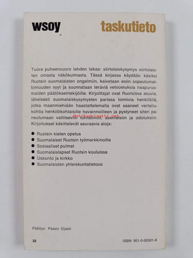 Muu(t) tekijä(t): Osmo Hormia, Paavo Lounela ym.Sarja: Taskutieto 90Asiasanat: ruotsinsuomalaiset