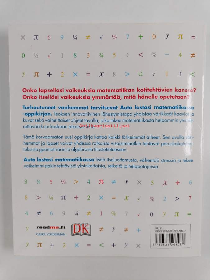 Muu(t) tekijä(t): Tapani LahtinenAlkuteos: Help your kids with mathAsiasanat: ongelmanratkaisu, matemaattiset kaavat, matematiikka, päättely, matemaattinen ajattelu