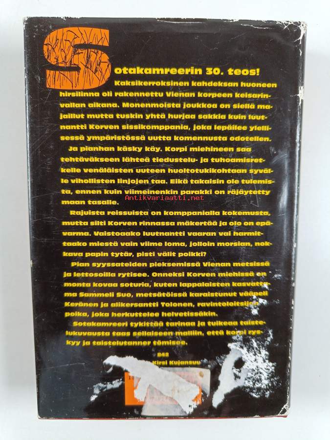 Hyvä. Tarkempi kuntoluokka: K3+ ; Selkämyksessä hieman vinoutta. Kansipaperin kunto: kulumaa/pienehköjä repeämiä & tahraisuutta