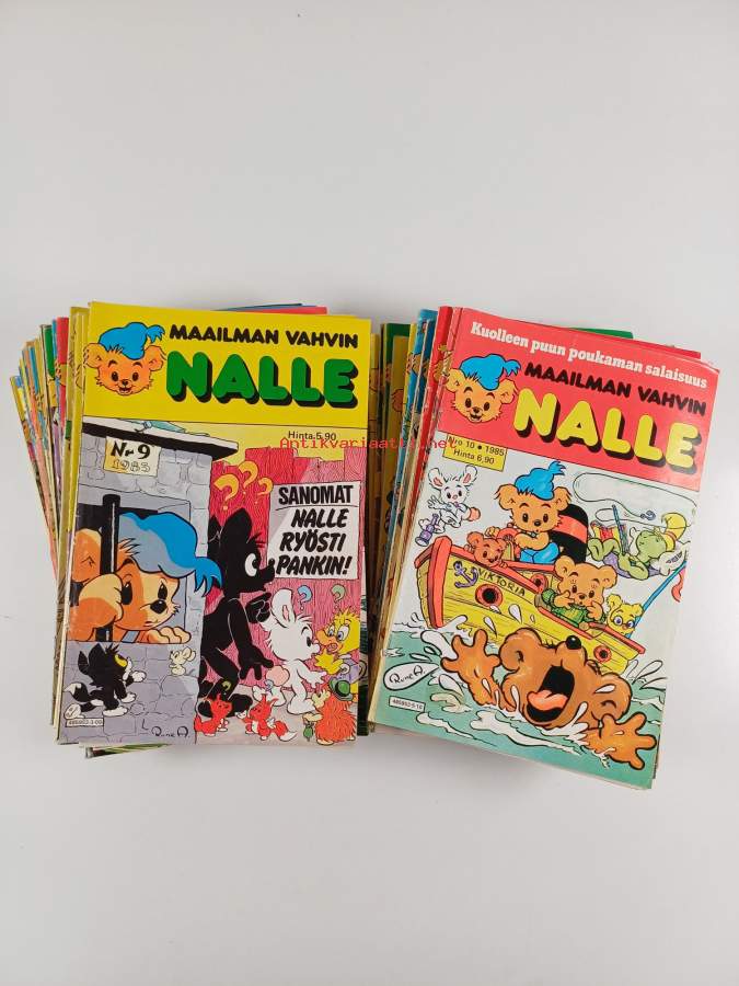sekalaisia numeroita laatikossa, muutamasta lehdestä puuttuu takakansi, joidenkin lehtien kansissa ja sivuilla repeämää, lehtien tehtäviä täytetty, yhden lehden selkämystä korjattu teipillä, muutamilla sivulla tussilla tehtyä jälkeä, yhden lehden etukannessa kuulakärkikynällä tehty merkintä