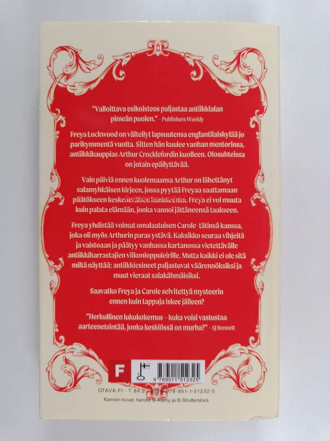 Sarja: Antiikin metsästäjät 1Alkuteos: The Antique Hunter's Guide to MurderAsiasanat: huumori, antiikkiesineet, murha, kaunokirjallisuus, kartanot, rikokset, väärennökset, jännityskirjallisuus