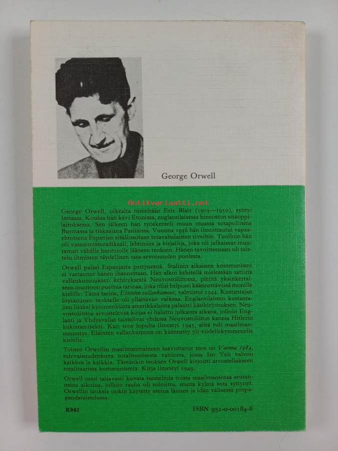 Merkinnät: omistajamerkintä leikattu pois etulehden ylälaidastaSarja: Kirjallisuutta kouluilleAlkuteos: Animal farmAsiasanat: klassikot
