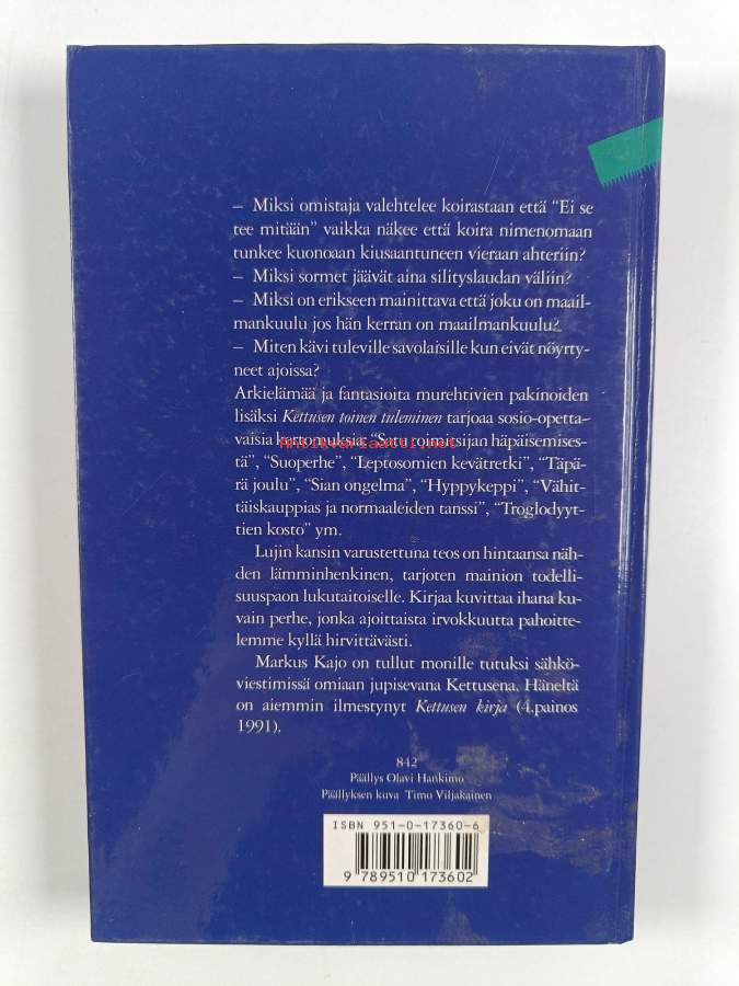 Kettusen kannettava, 2008. Kajon sanataituruus arjen ja juhlan pienistä iloista ja murheista jaksaa kantaa vuodesta toiseen. Lukija myhäilee mukana.