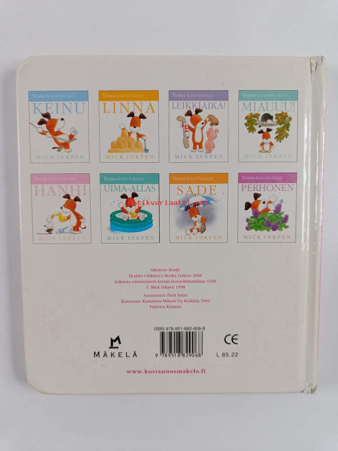 Muu(t) tekijä(t): Pauli SalmiSarja: Tessu-katselukirjatAlkuteos: Honk!Asiasanat: eläimet, lastenkirjallisuus, koira, auttaminen, hanhet, kuvakirjat, paksulehtiset kirjat