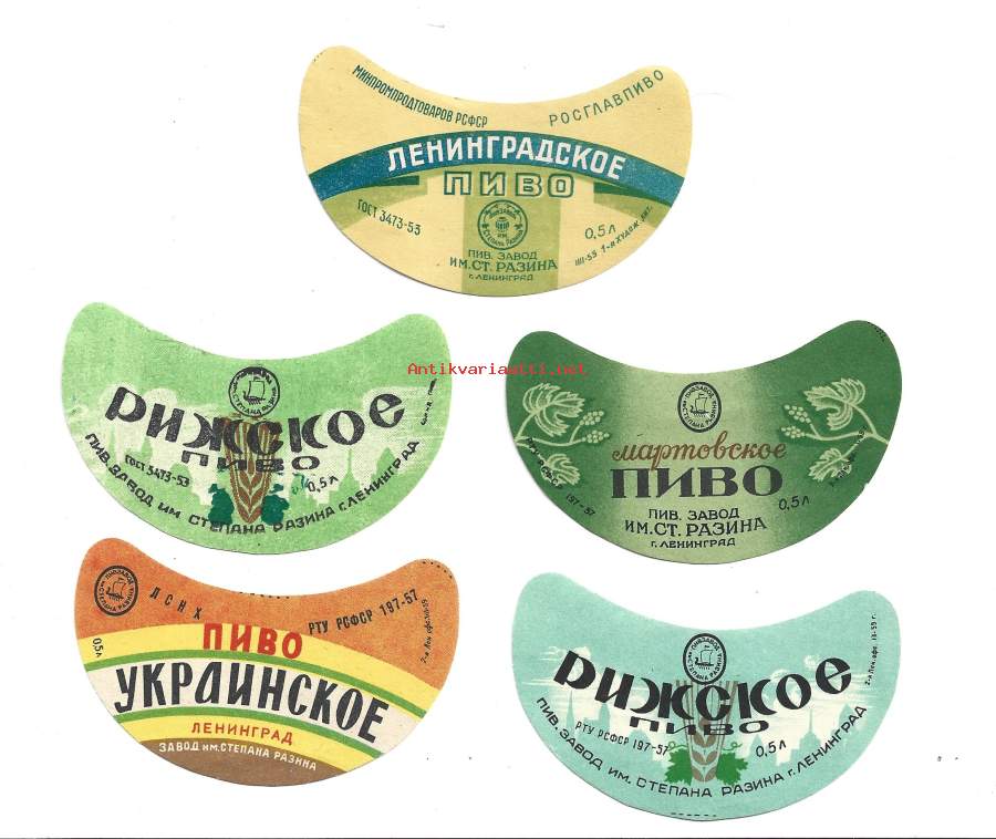 vintage-tyylisiä neuvostoliittolaisia olutetikettejä Moskovan ja Leningradin panimoilta. Etiketit ovat peräisin 1950- tai 1960-luvulta.