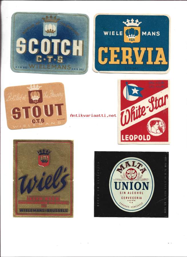 Vanhoja ulkomaisia olutetiketttejä 6 kpl erä - olutetiketti