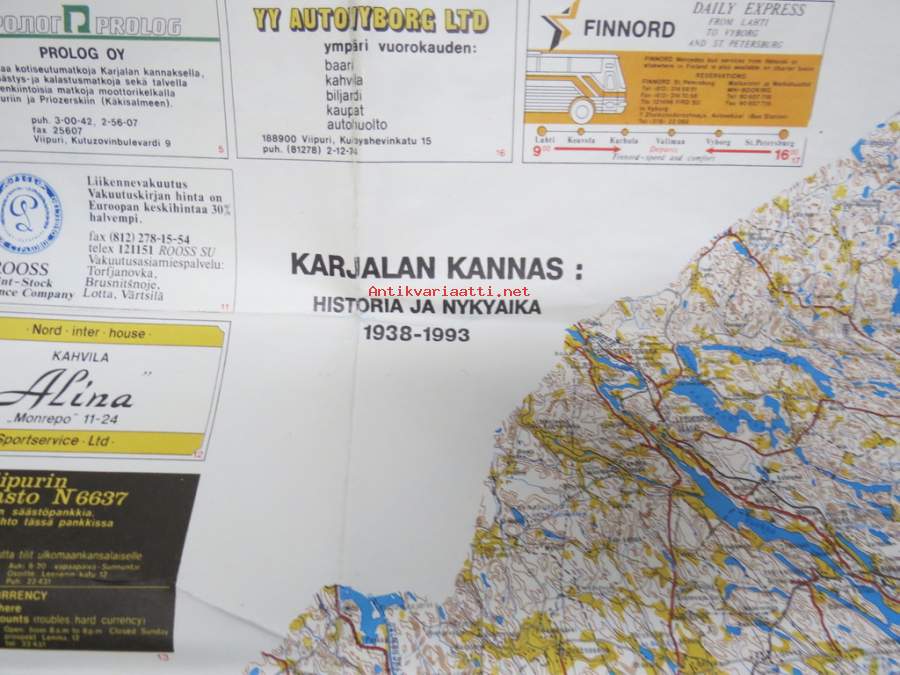Karjalan Kannas matkailukartta, Historia ja nykyaika 1838-1993, mukana Viipurin kartta - Viipuri 700 -kotiseutumatkailijoille tarkoitettu kartta