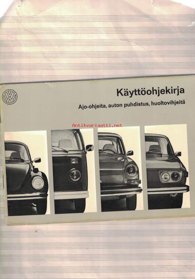VW Kupla 1200, 1300, 1303. VW Umpipaketti, Avopaketti, Doppeli, Ikkunapaketti ja pienoisbussi. VW 1600. VW 412.15 x 21 cm.- Pieni Helposti kuori.
