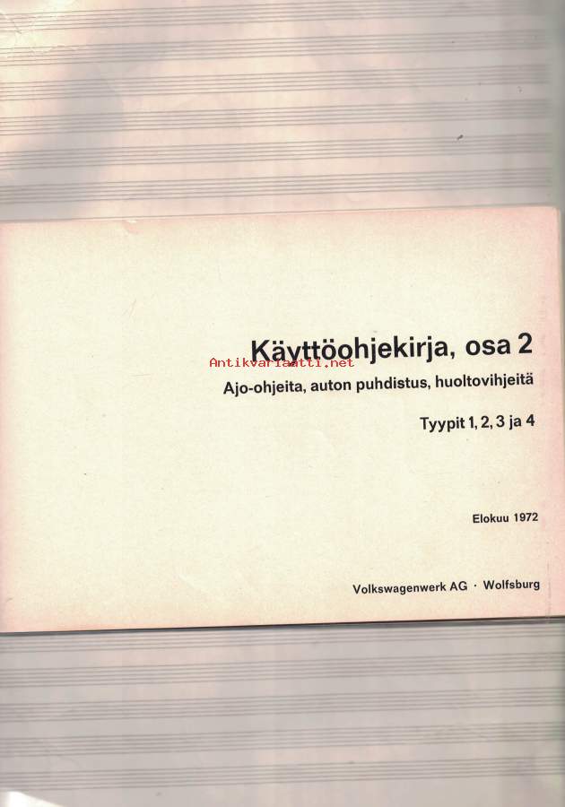 Volkswagen käyttöohjekirja osa 2, Ajo-ohjeita, auton puhdistus, huoltovihjeitä - Tyypit 1,2, 3 ja 4, elokuu 1972