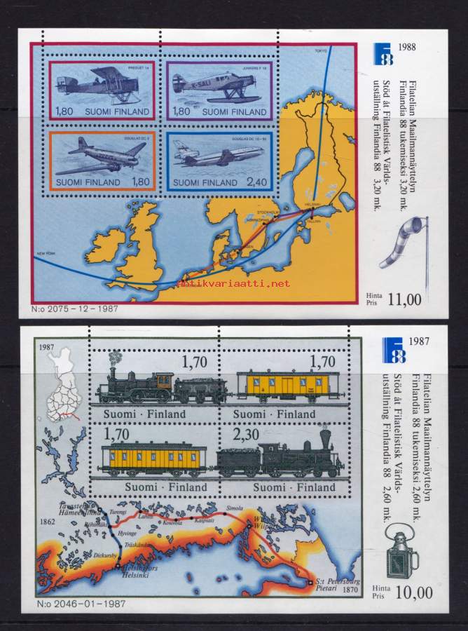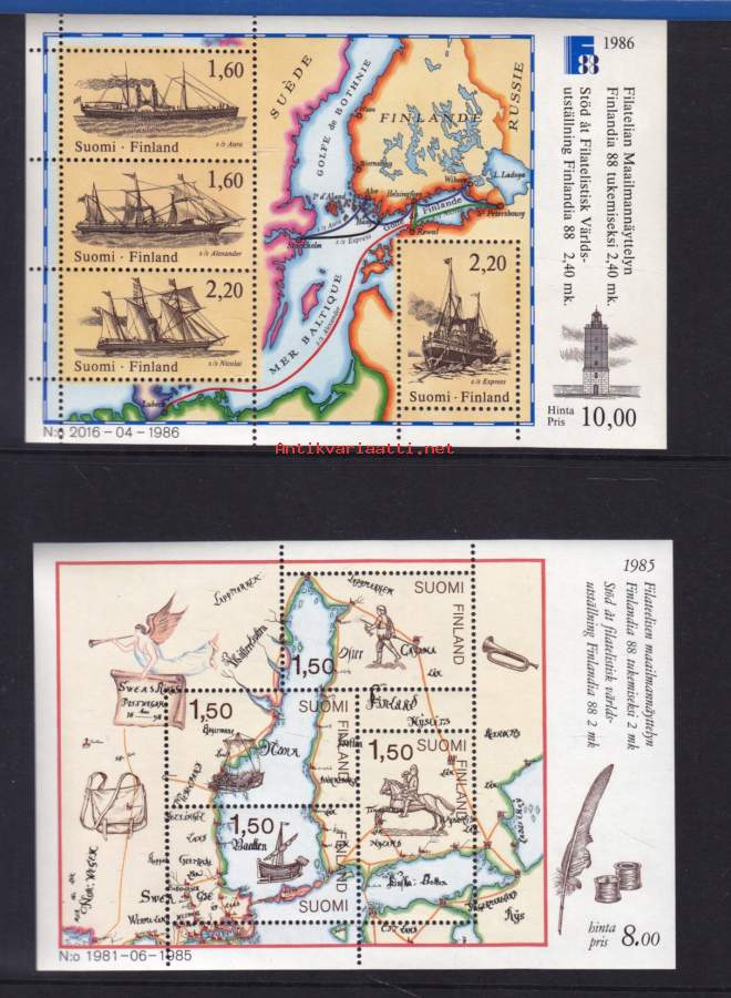 Filatelia Suomi - Finlandia -pienoisarkit (blokit) 4 erilaista** postituore: 1985-1988.