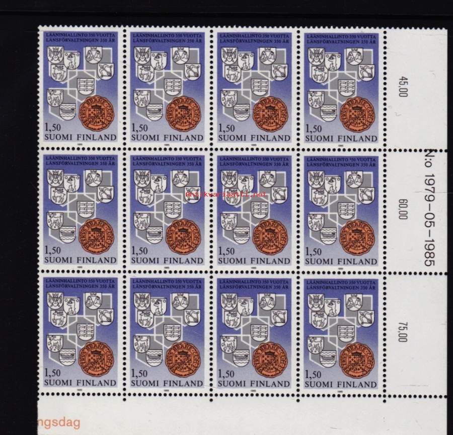 Filatelia Suomi - Lääninhallinto 350-v., 1997; LAPE 969** postituore arkinosa 12 kpl.