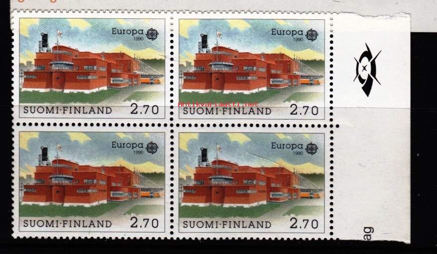 Filatelia Suomi - Eurooppa-merkki 2,00mk, 1990; LAPE 1049 ** postituore arkinosa 4 kpl.