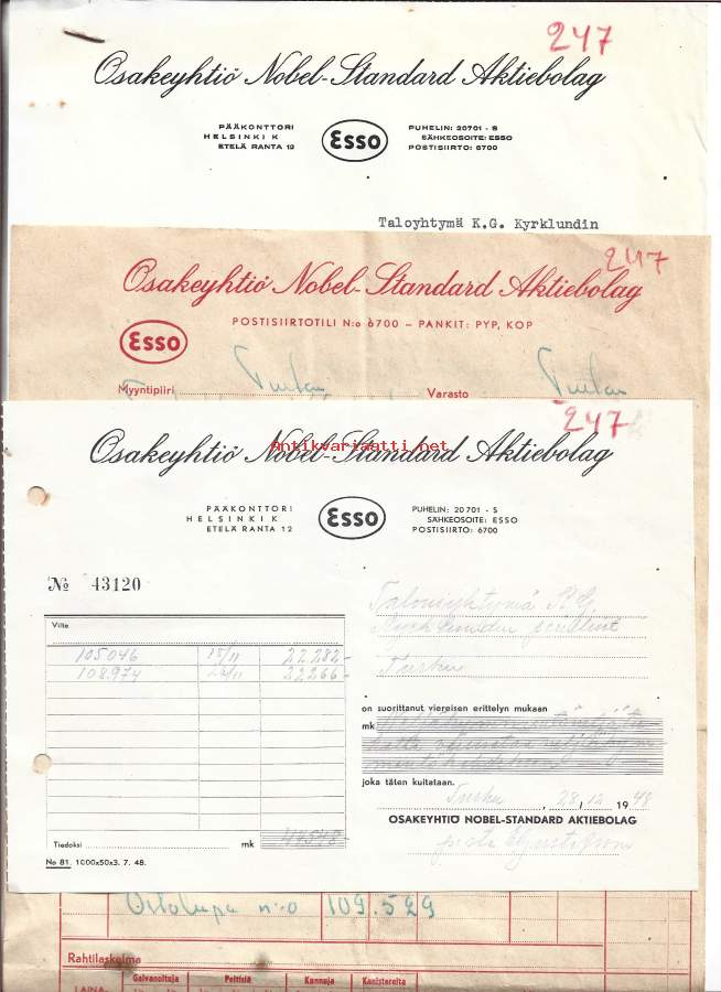 Nobel Standard Oy / Esso 1948 firmalomake 3 eril