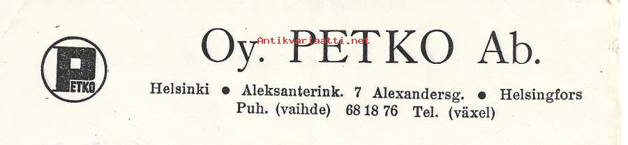BP- Petko Oy Helsinki 1960 - firmalomake