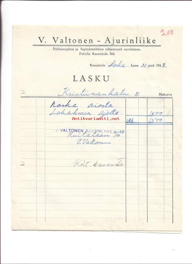 E Valtonen Ajurinliike Turku 1948 - firmalomake