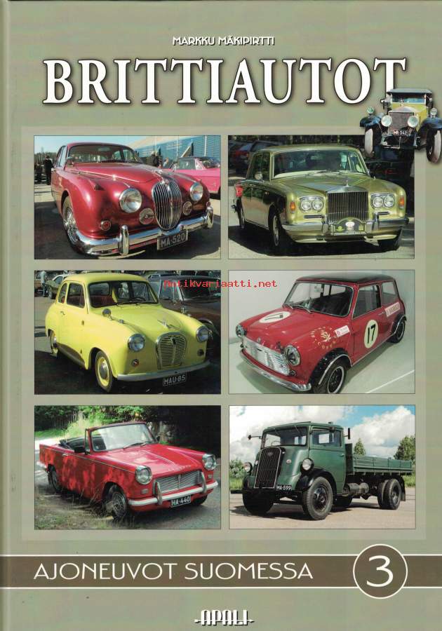 Markku Mäkipirtin ajoneuvohistoriaa käsittelevä teos esittelee laajasti Suomen ajoneuvorekisterissä olleita brittiautoja. Kirjassa on yli 400 valokuvaa 230 eri automallista.- Postipaketti.