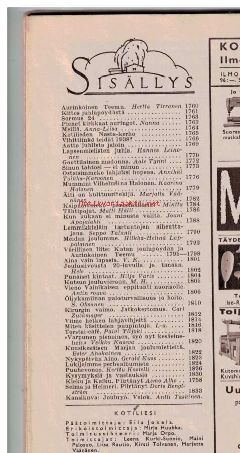 Hyvä. Siisti lehtiYhdeltä sivulta leikattu mainos pois. Ei hätää, sivun toisellkin puolella on ollut mainos