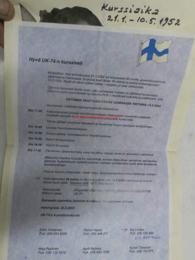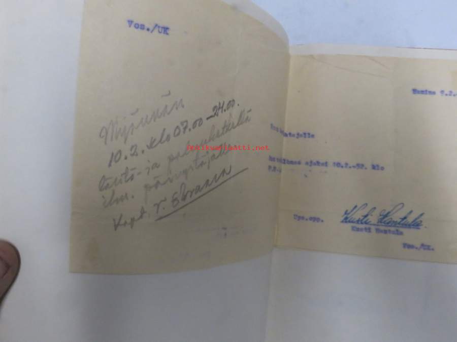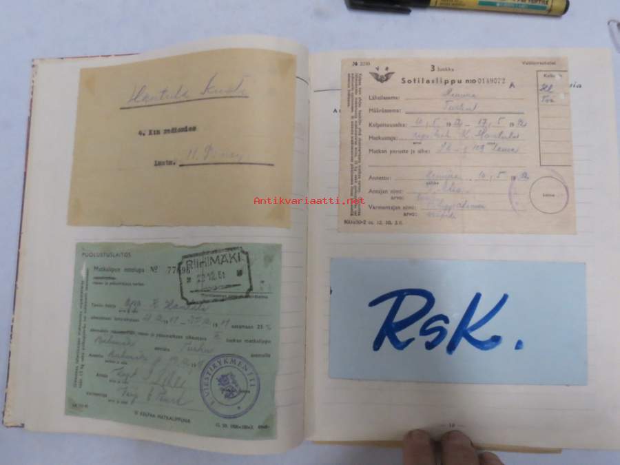 Sotilasmuistioni - varusmiespalveluksen aikaisia muistoja ja piirroksia ym. varten tarkoitettu kirja, viestimies-RUK 1951-52, kokoontumisesta v. 2002 materiaalia