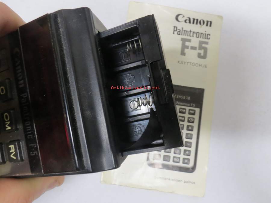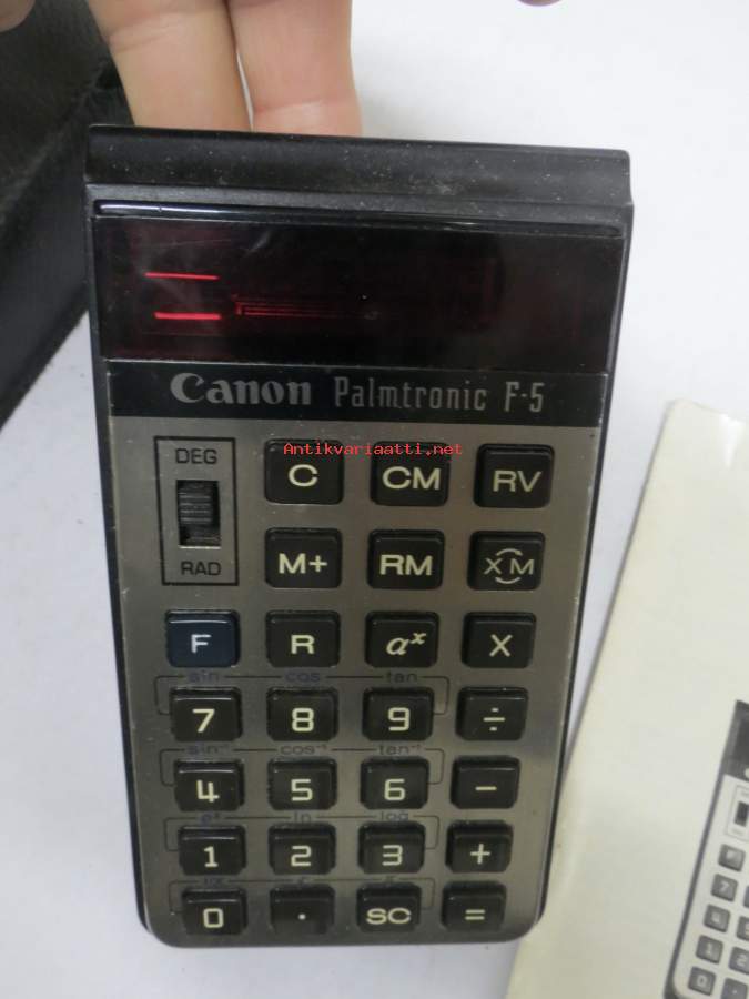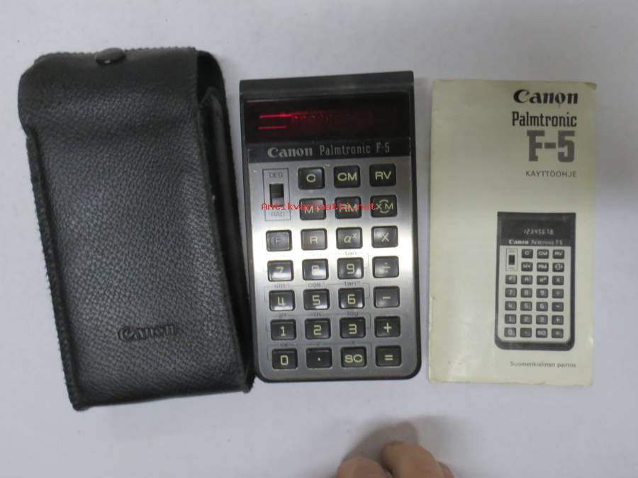 Canon Palmtronic F5 -taskulaskin + käyttöohjekirja + alkuperäinen kotelo