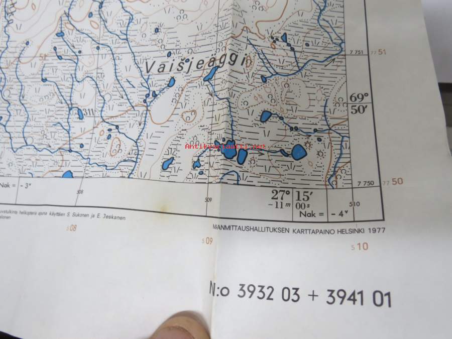 Suomen yleiskartta 1: 400 000, Lehti A3, 1946, mm. Utsjoki