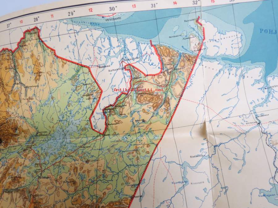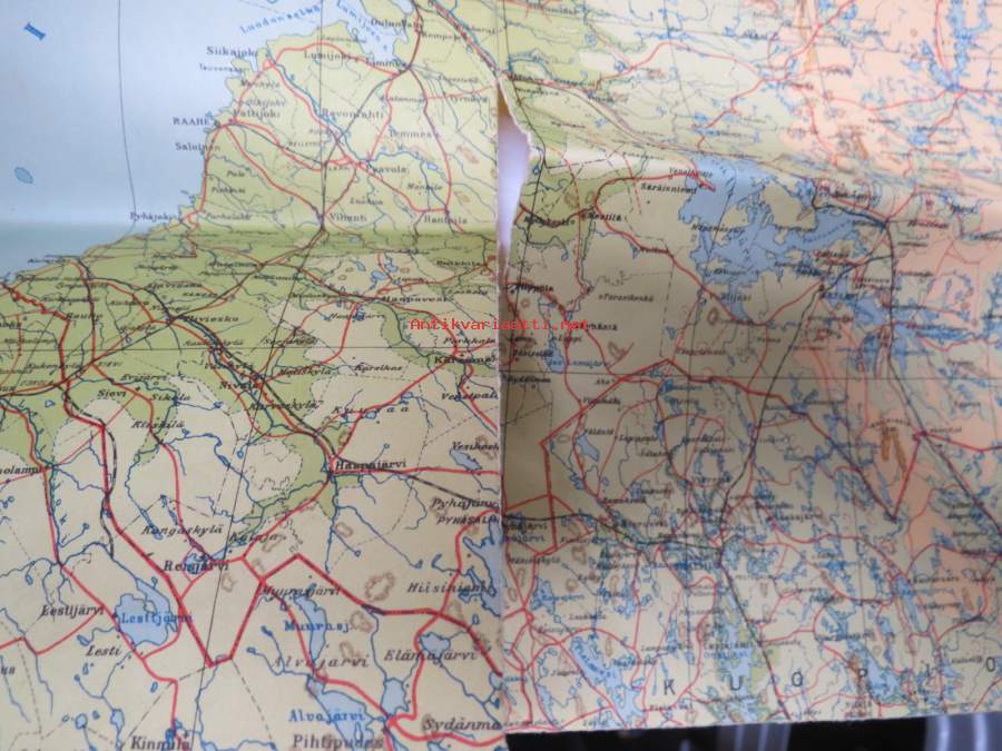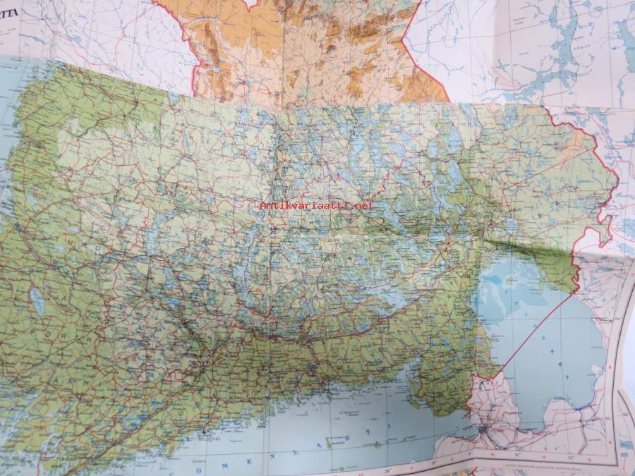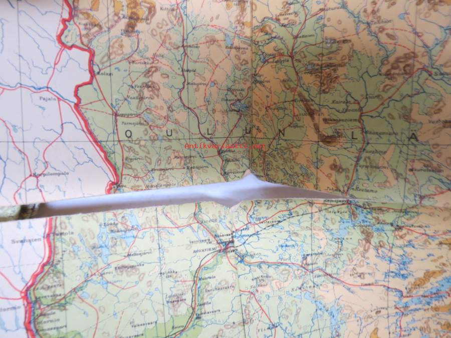 Seinäkartta, taitoksista auki / aukeamassa, mutta käytettävissä esim. seinään / alustaan kiinnitettynä, hyvää rekvisiittaa. Noin 80 x 120 cm.