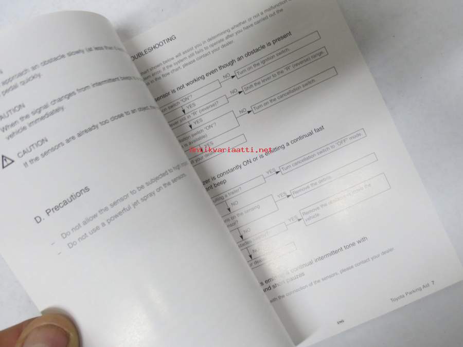 Toyota Parking Aid TPA400 Owner´s Manual, käyttöohjekirja, monikielinen, mysö suomi