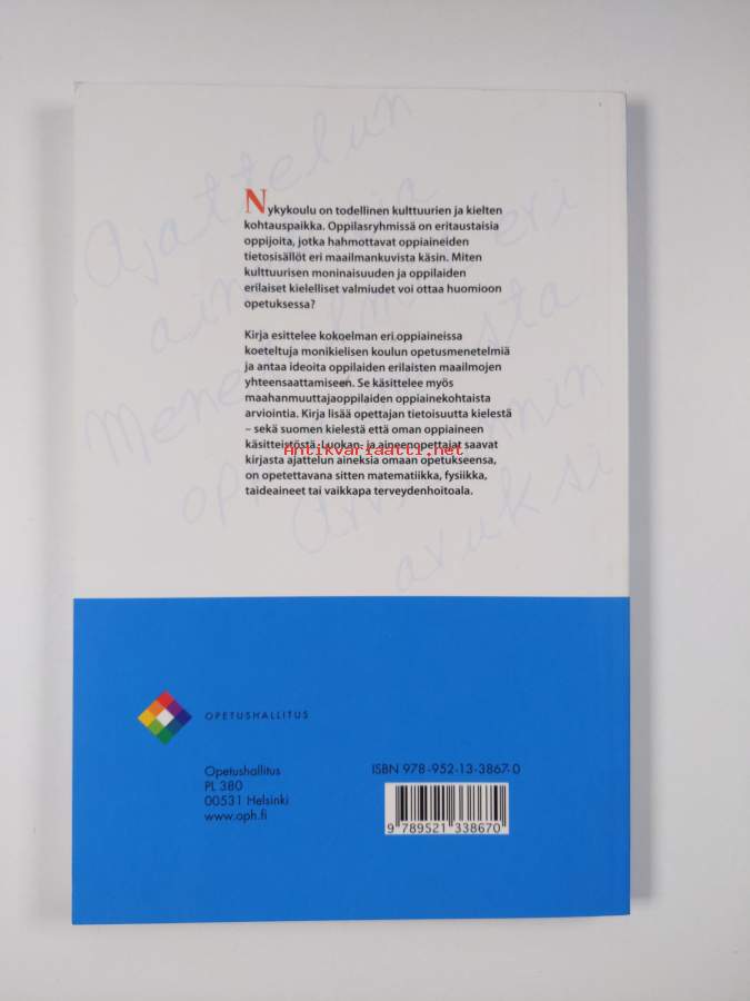 Asiasanat: suomen kieli, koulu, opetus, maahanmuuttajat, monikulttuurisuus, oppiminen, opetusmenetelmät, koulut, oppimistyylit, oppilaat, oppilasarviointi, didaktiikka, oppimisvalmiudet, kieli, monikielisyys, oppiaineet, mångkulturalism, undervisningsmetoder, invandrare, skolor, elevbedömning, integroitu opetus, maahanmuuttajatausta