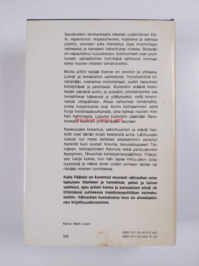 Päätalo -setti (26 kirjaa) : Oman katon alle ; Iijoen kutsu ; Ukkosen ääni ; Liekkejä laulumailla ; Pohjalta ponnistaen ; Täysi tuntiraha ; Miinoitettu rauha ; Pa...