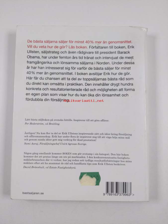 Koko nimi: Bästsäljaren : om avstamp, inspiration, försäljning, motivation, lust, nöjda kunder, nya kunder, affärsvänner, samarbete, hårt arbete, framgång och det som du älskar näst mest här i livet: att göra affärer : en bokAsiasanat: myyntityö, myynti, försäljning, försäljningsarbete