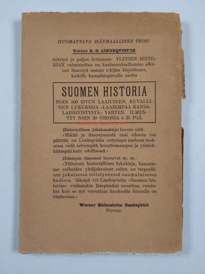 Huonokuntoinen (lukukelpoinen). Jonkin verran tahraisuutta etukannessa, selkämyksessä aavistus vinoutta. kannet irti