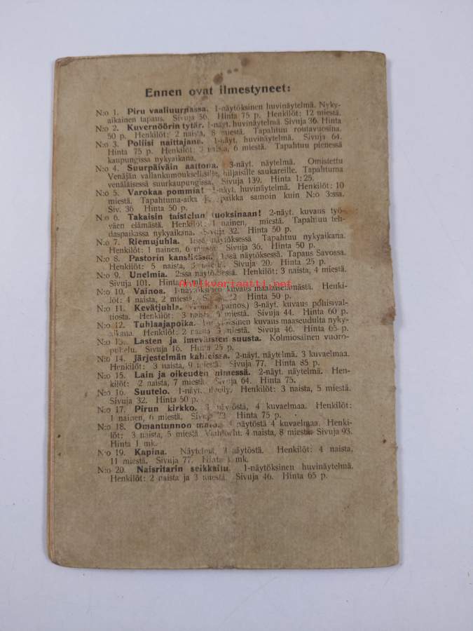 Muu(t) tekijä(t): Kalle RissanenSarja: Työväen näytelmäkirjasto 21
