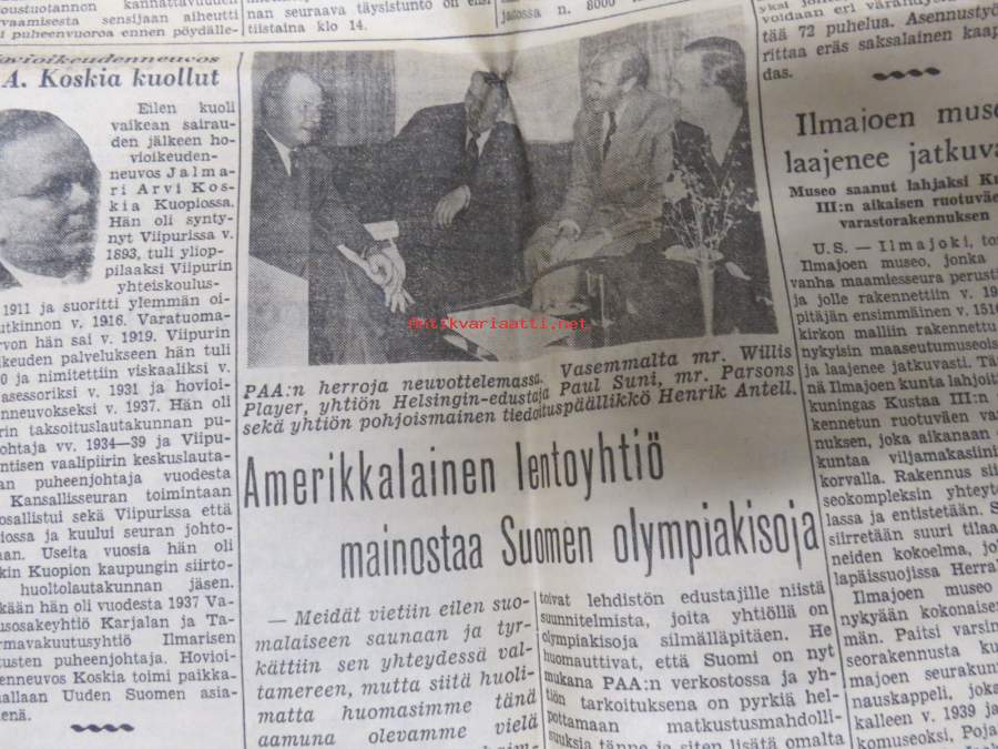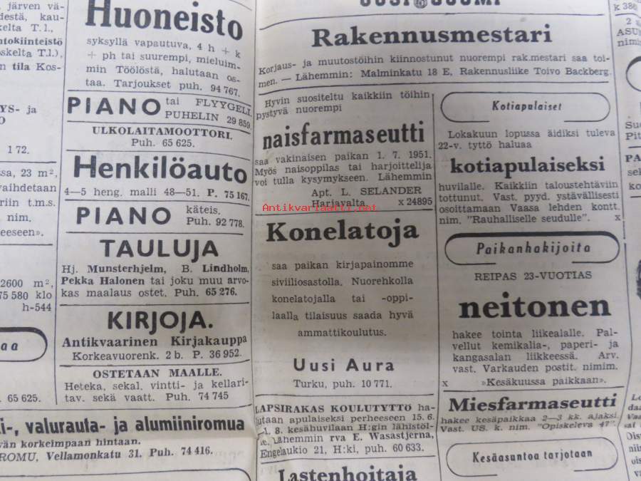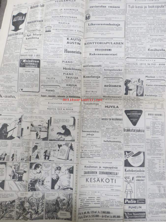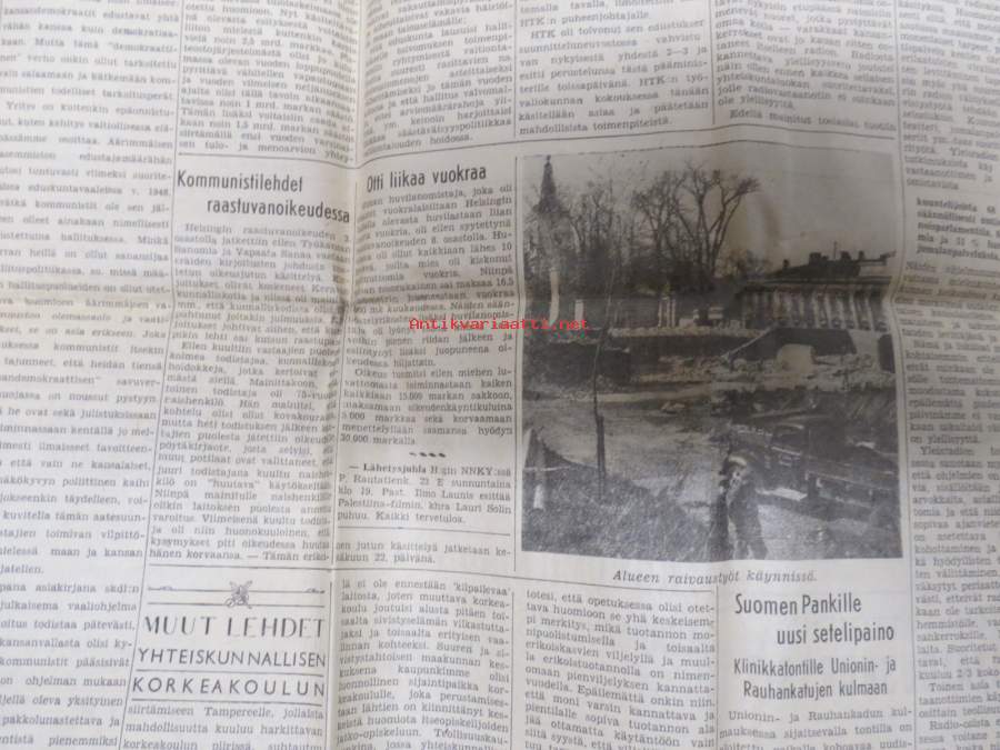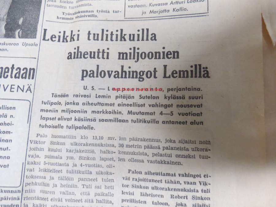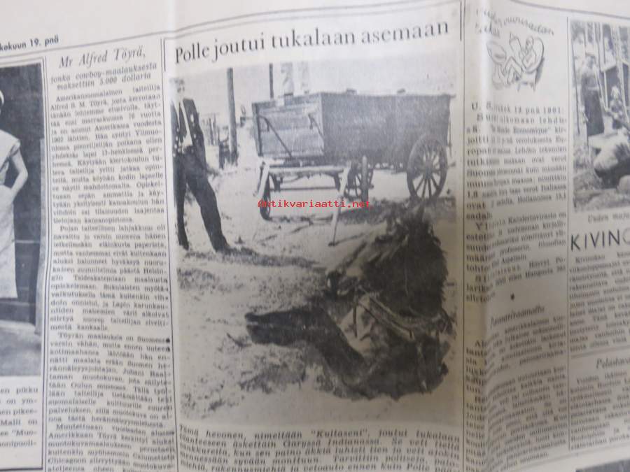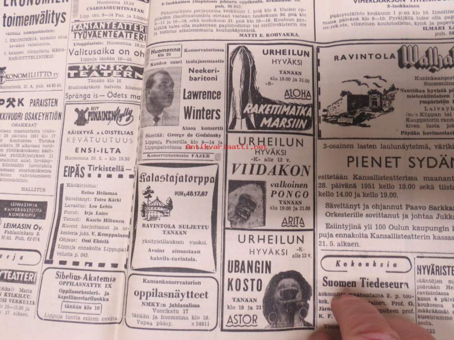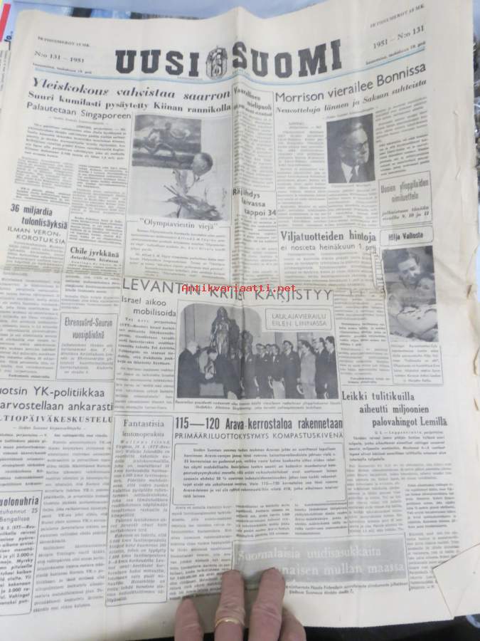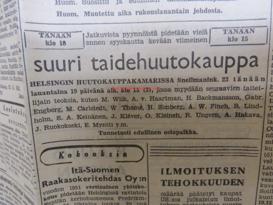 Uusi Suomi la 19.5.1951, Alfred S.M. Töyrä taiteilija Amerikasta, Lemillä miljoonapalo tulitikkuleikeistä, Matkavaluutan verotuslaki, Picada Finlandes Argentiinassa