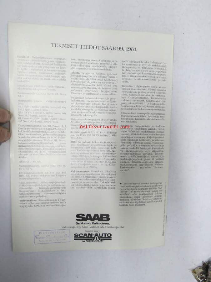 Saab 99 1981 -myyntiesite / sales brochure