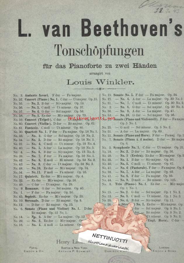 Concert No. 4 G-dur, Op. 58 für das Pianoforte zu zwei Händen.