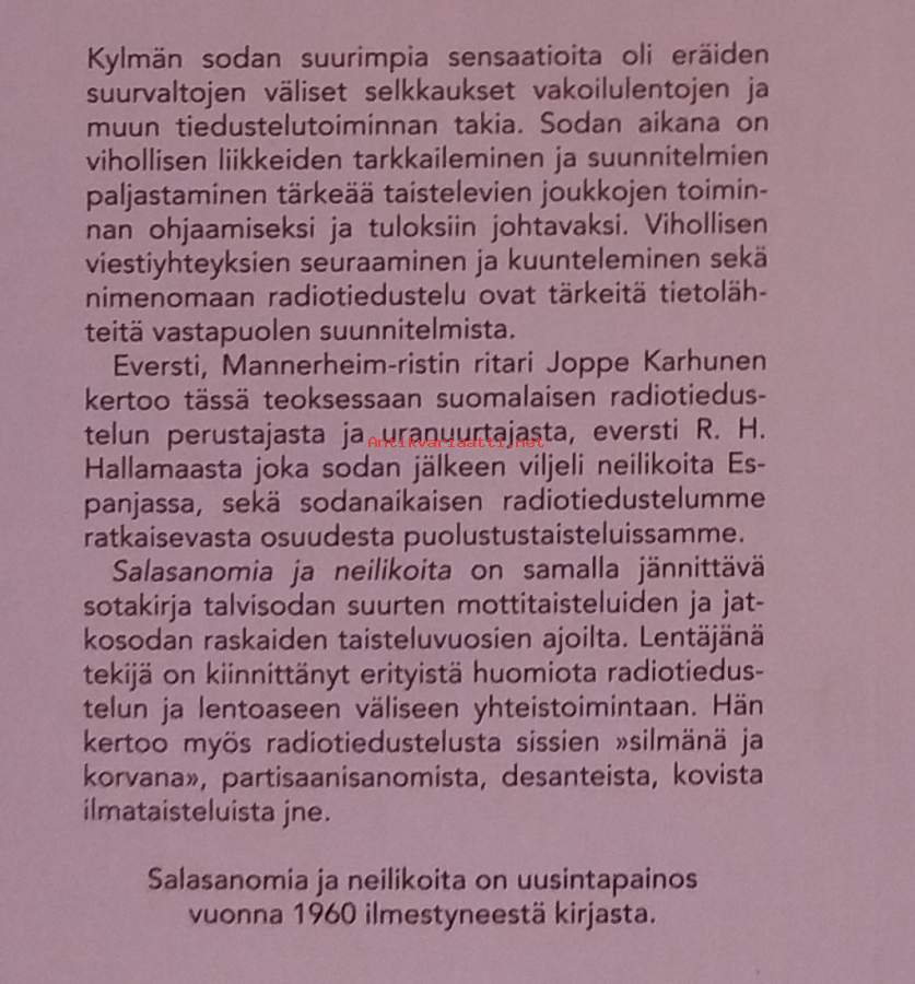 Salasanomia ja neilikoita. (Sotahistoria, radiotiedustelu )